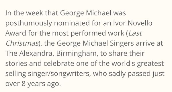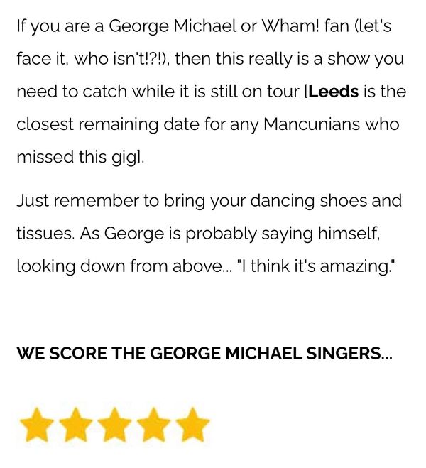 For all booking enquiries info@thegeorgemichaelsingers.com